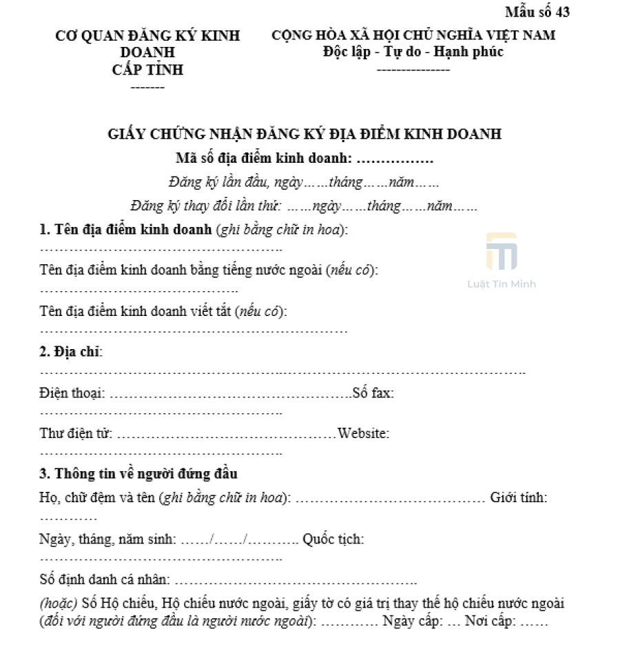 ⤓ Tải mẫu miễn phí: Hồ sơ đăng ký địa điểm kinh doanh.
