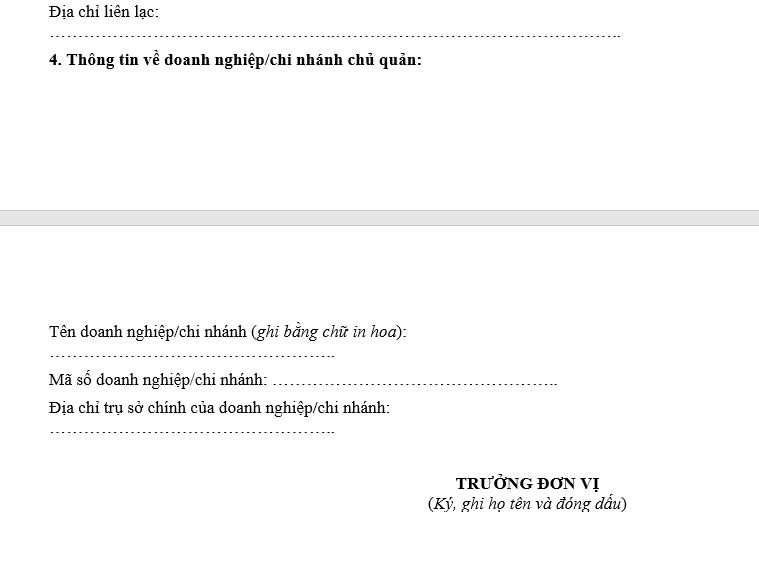 - Họ tên, chữ ký của người đại diện theo pháp luật của doanh nghiệp hoặc người đứng đầu chi nhánh mà địa điểm kinh doanh trực thuộc.