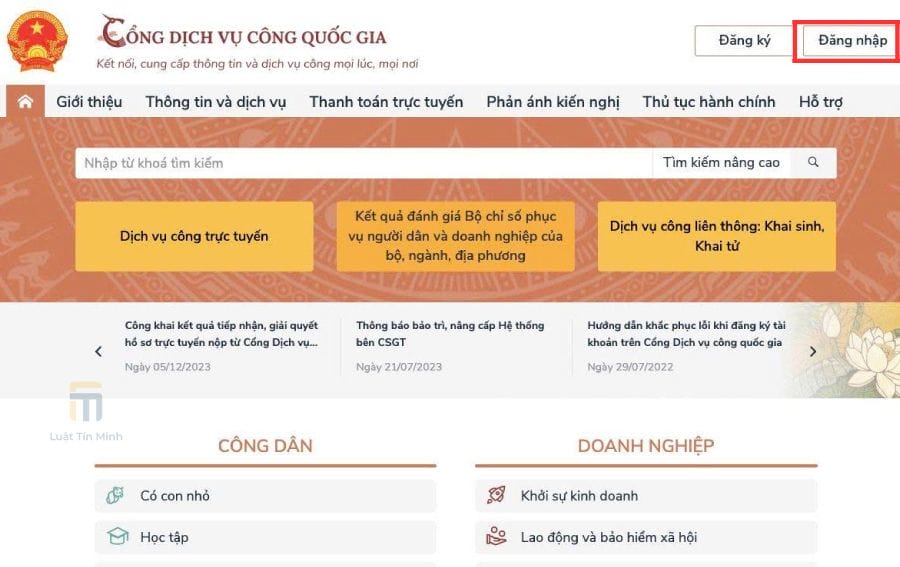 ➧ Bước 2: Truy cập và đăng nhập Cổng dịch vụ công quốc gia
