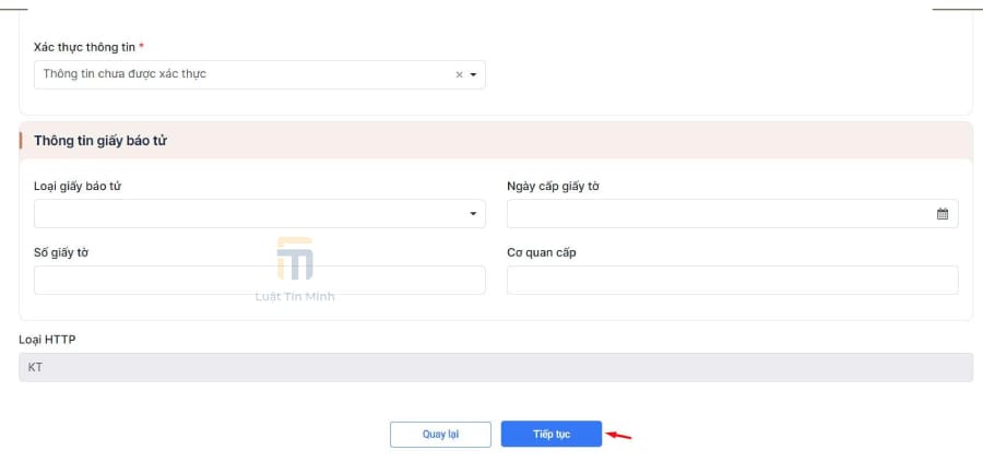 Khi hoàn thành việc kê khai thông tin, bạn bấm “Tiếp tục”.