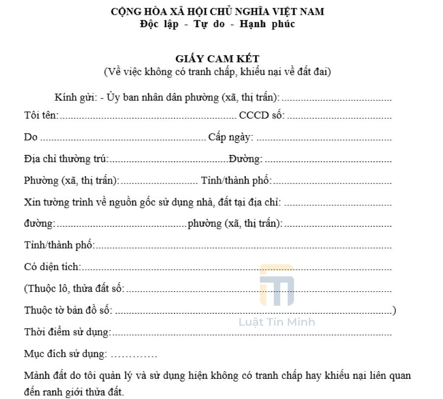 - Mẫu bản cam kết không tranh chấp đất đai.