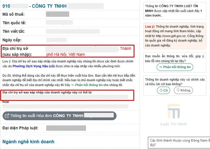 ➣ Xem chi tiết: Cách tra cứu địa chỉ mới sau sáp nhập của công ty.