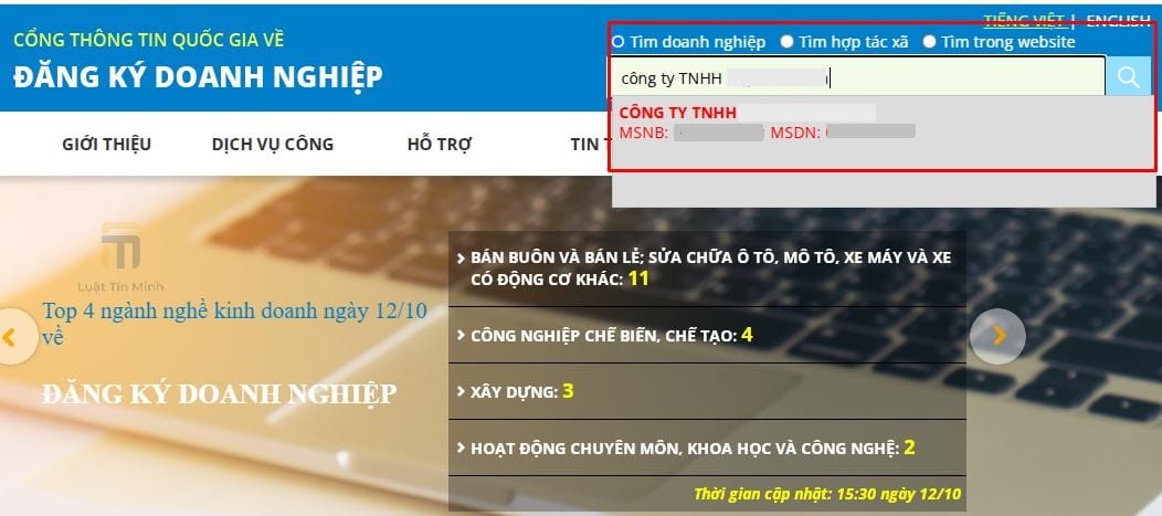 - Nếu tra cứu theo tên doanh nghiệp, kết quả sẽ là các doanh nghiệp có tên giống hoặc gần giống với doanh nghiệp cần tìm.