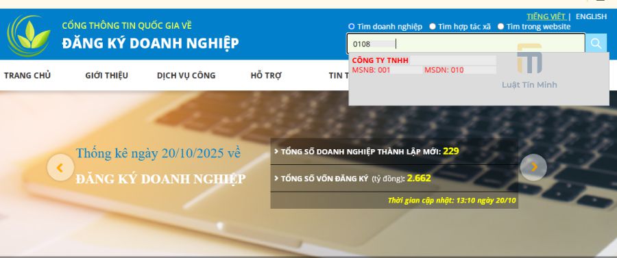Cách tra cứu thông tin doanh nghiệp, tra cứu tình trạng hoạt động doanh nghiệp: tên, mã số thuế, địa chỉ, ngành nghề, vốn điều lệ, người đại diện pháp luật…