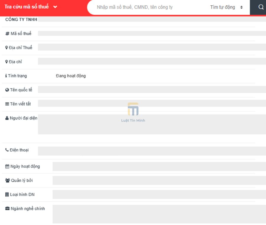 Hiện tại, trang Tổng cục Thuế chỉ hiển thị một số thông tin của doanh nghiệp gồm: mã số thuế, địa chỉ trụ sở, cơ quan quản lý thuế và trạng thái (tình trạng) hoạt động. Do đó, trường hợp bạn cần tra cứu các thông tin khác ngoài các thông tin trên, bạn nên tra cứu trên các trang website còn lại mà Luật Tín Minh hướng dẫn.